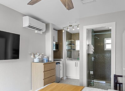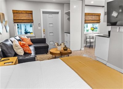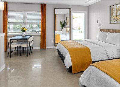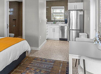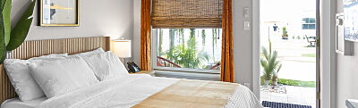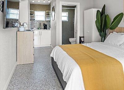 Our 13 guest studios are each a cozy retreat, blending timeless, mid-century-influenced décor with the ease of kitchenette comforts in every room. Brew a cup of coffee to enjoy under our outdoor pergola, pack a lunch for the beach or just chill a few cocktails for sunset sipping. We invite you to explore our unique studio styles to find your perfect oasis.